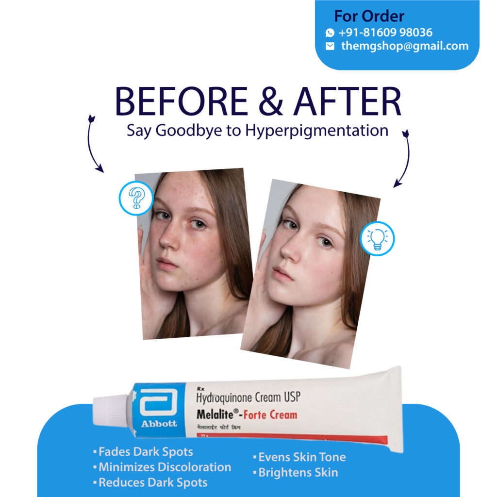 Melalite Forte Cream (30gm) Hydroquinone (4% w/w) lighten the areas of darkened skin such as chloasma, melasma, freckles, age spots and acne scars