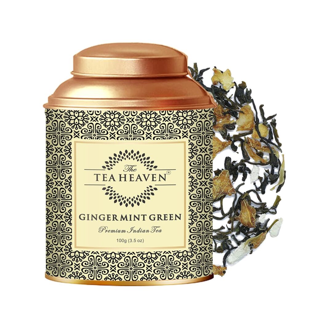 The Tea Heaven | Tea Gift – Ginger Mint Green Tea | Tea Gift Pack-Soothes Stomach- 100% Natural Ingredients- 100 Grams (50 Cups)
