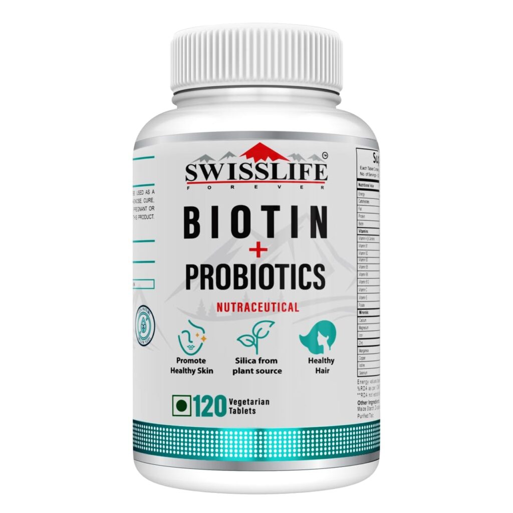 SWISSLIFE FOREVER Biotin with For Long & Thick Hair Growth, Glowing Skin & Longer Nails | For Men And Women – 120 Veg Tablets