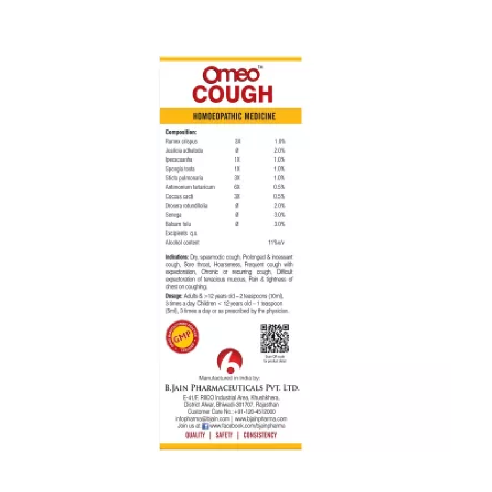 B Jain Omeo Cough Syrup is a homoeopathic formulation that can help provide relief from a cough. It may be used for all kinds of coughs.