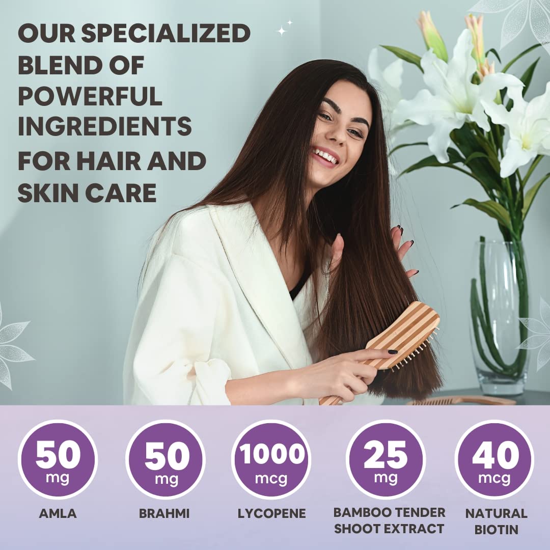 - ✔ AMLA AND BAMBOO EXTRACT SUPPORTS SKIN HEALTH – Amla and Bamboo Extract in our biotin supplements for hair and skin may help maintain healthy skin tissue.