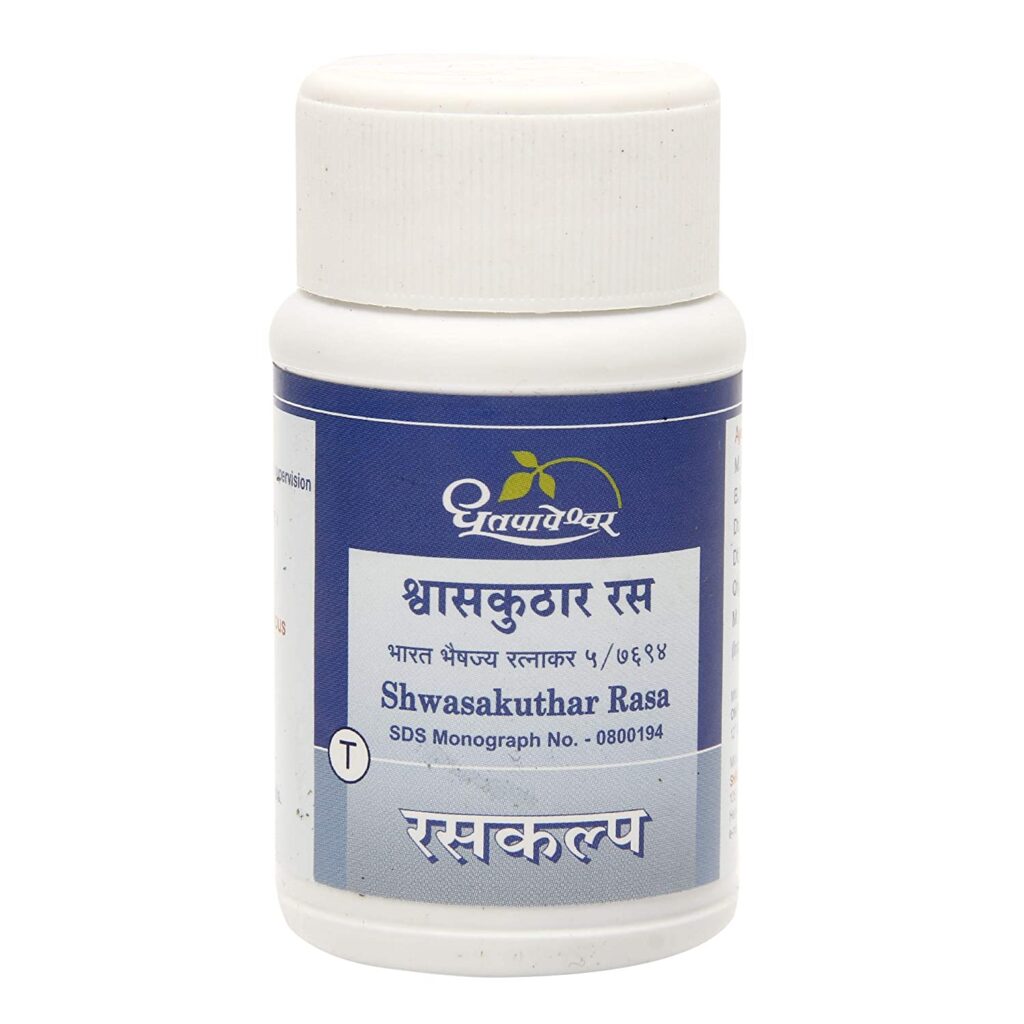 Dhootapapeshwar Shwasakuthar Rasa is an ayurvedic product that might help reduce body temperature and pain. It may assist respiratory functions. It might improve the overall health of the individual.