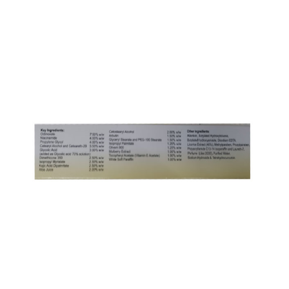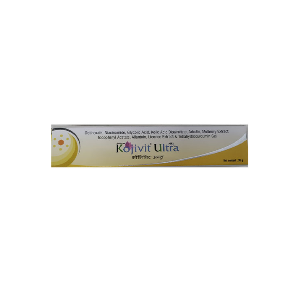 Kojivit Ultra Gel is a skincare gel which can help reduce brown patchy discolouration of the skin and hyperpigmentation. The gel contains octinoxate, niacinamide, glycolic acid, kojic acid, arbutin, mulberry extract, vitamin E, and curcumin as the key ingredients, which are potent skin-brightening agents.