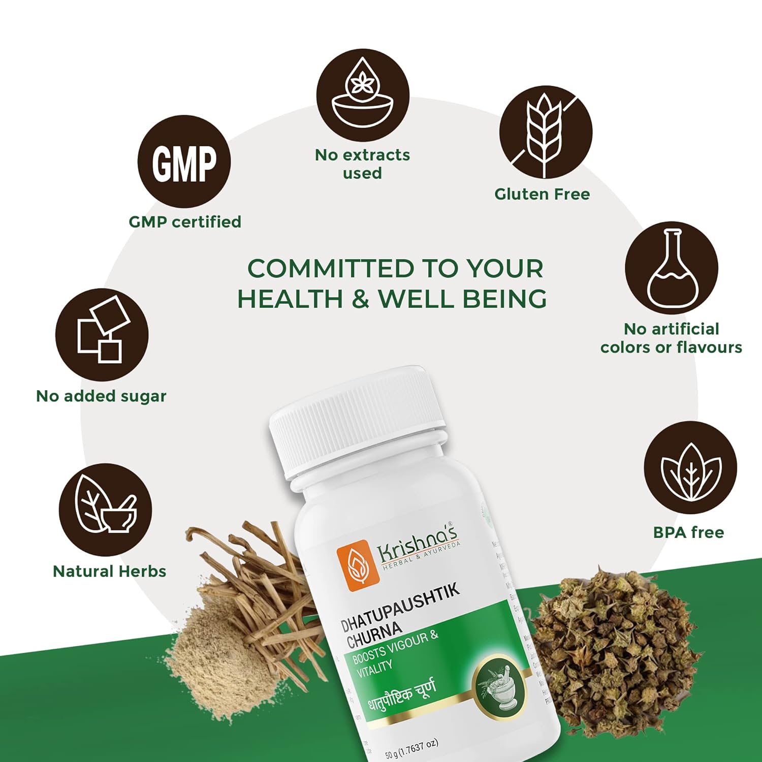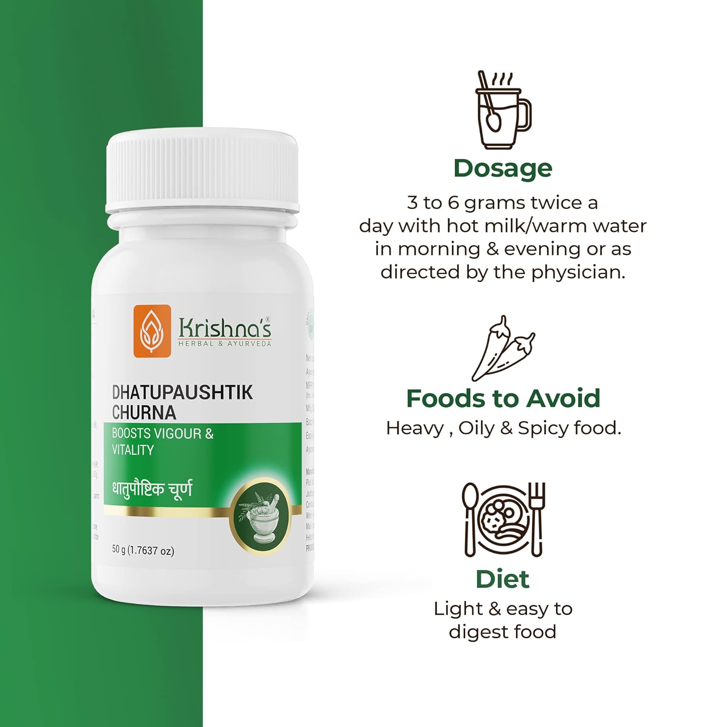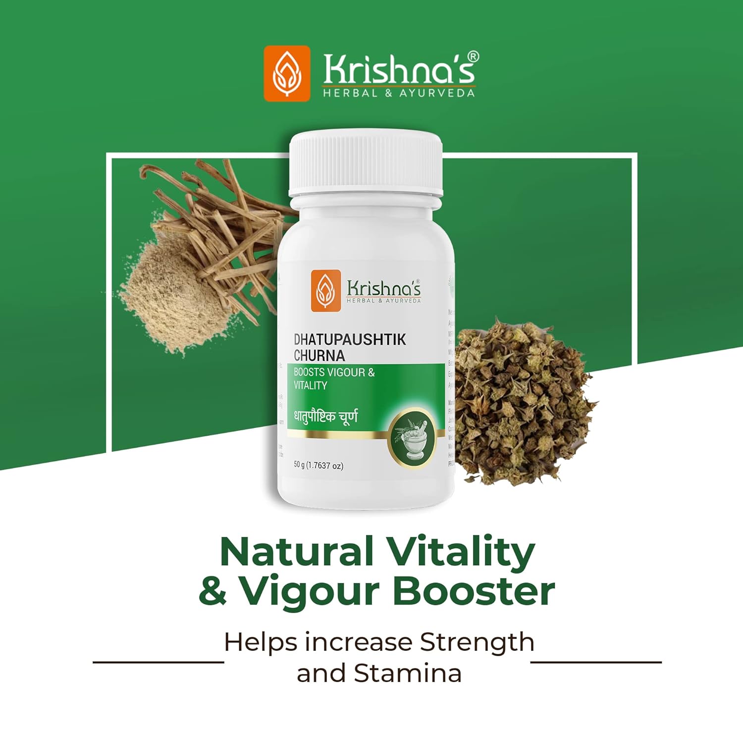 - Krishna’s Dhatupaushtik Churna is a herbal remedy for various types of body weakness