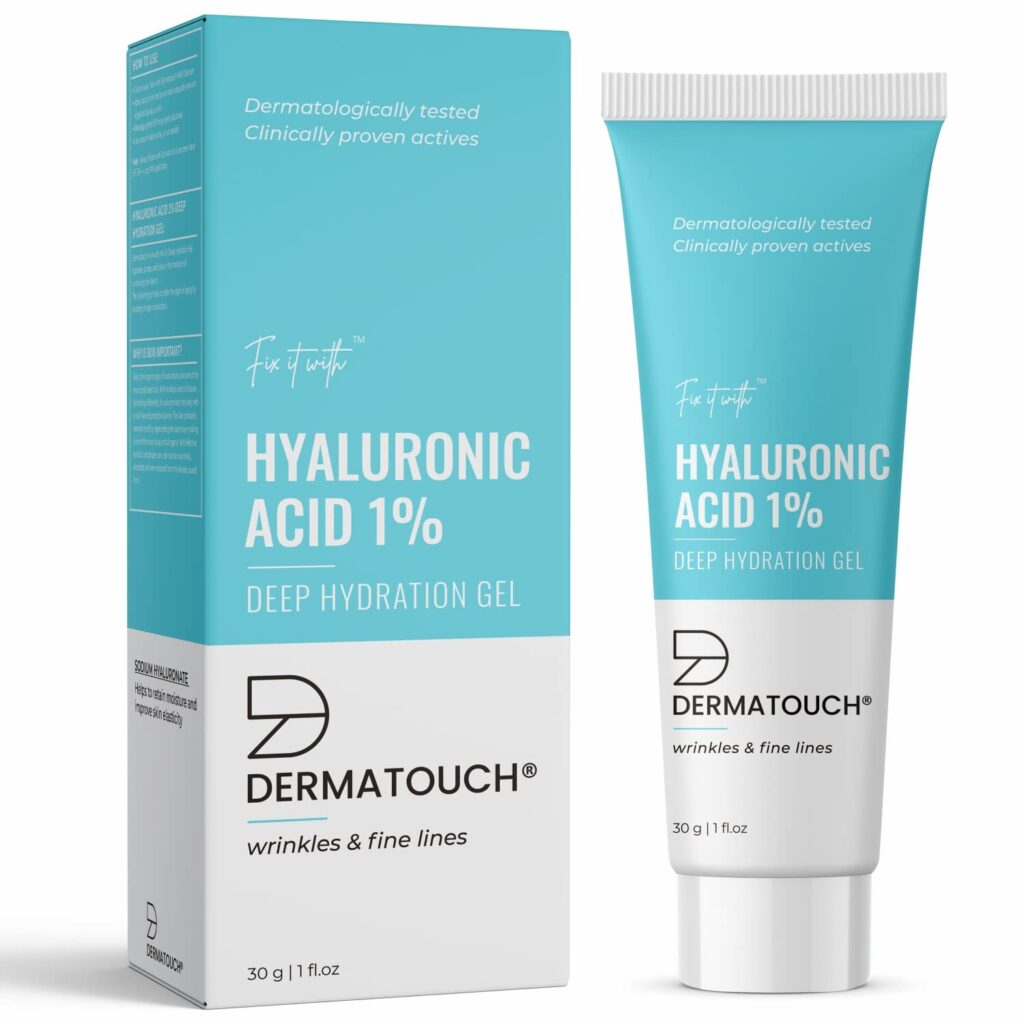 DERMATOUCH 1% Hyaluronic Acid Gel Deep Hydration | Glowing Skin, Wrinkles & Fine Lines, Ultra light Serum Replacement gel – 30G