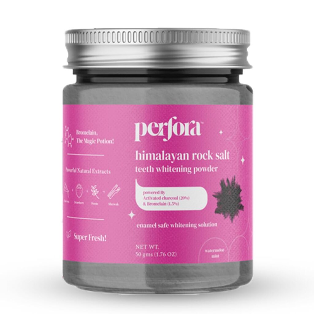 Perfora Charcoal Teeth Whitening Powder | Enamel Safe & Effective Teeth Whitener Solution Dental Kit| Stain Removal and Activated Charcoal Formula For Long Lasting Freshness | Watermelon Mint Flavour 50 gm