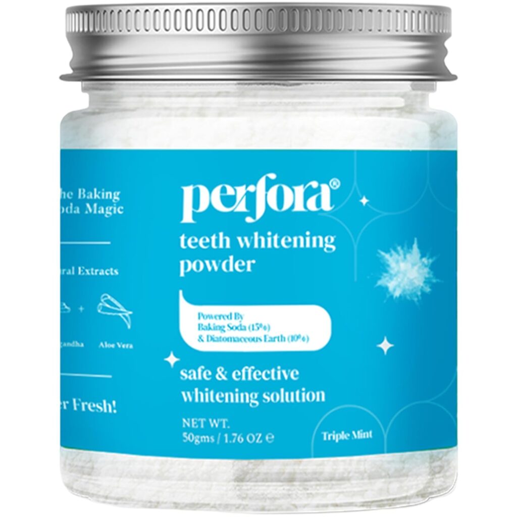 Perfora Teeth Whitening Powder | Enamel Safe & Effective Teeth Whitener Solution| Stain Removal and Triple Mint Formula For Long Lasting Freshness | Teeth Cleaning Dental Kit For All Teeth Types | 50g (Triple Mint)