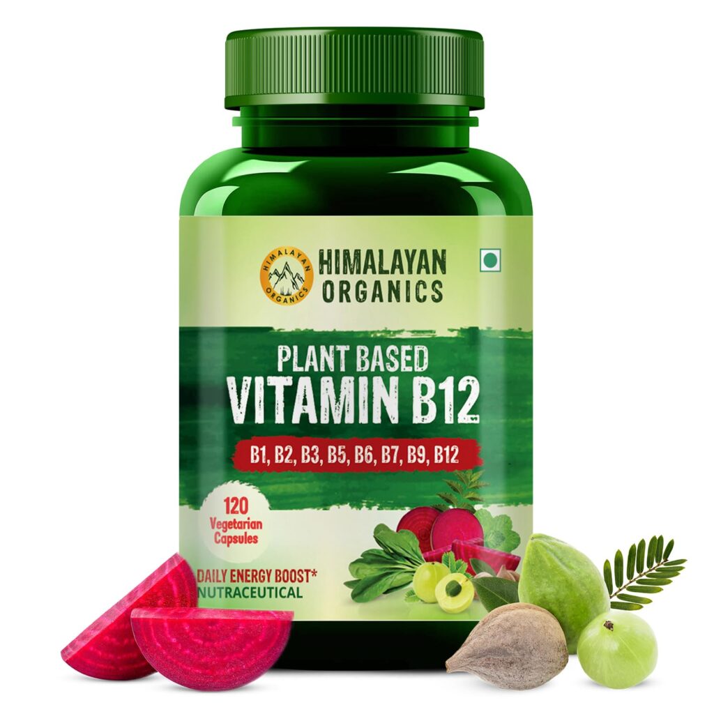 Himalayan Organics Plant Based Vitamin B-12 | Natural Wheat Grass, Moringa, Alfalfa | Boost Energy Level | Good For Nervous System & Brain Function -120 Veg Capsules